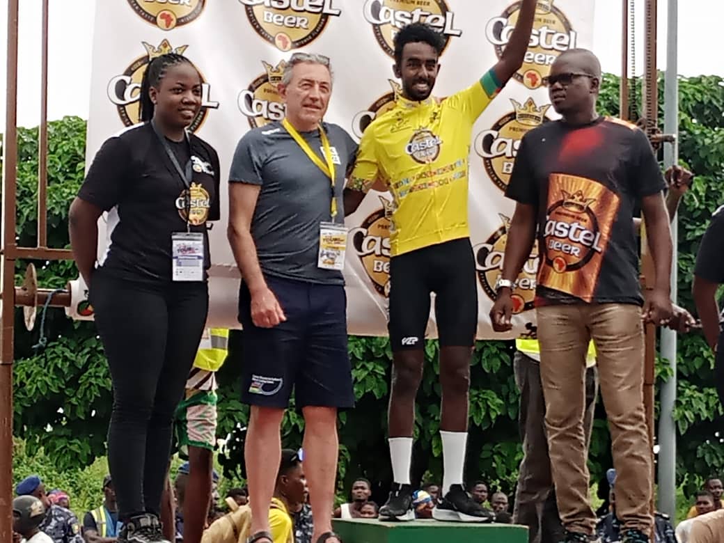 Habteab Yoel ( Team Bike AID / Allemagne) a gardé son appétit vorace pour les quatre premiers prix dont le plus important est le maillot jaune de leader (Castel Beer).