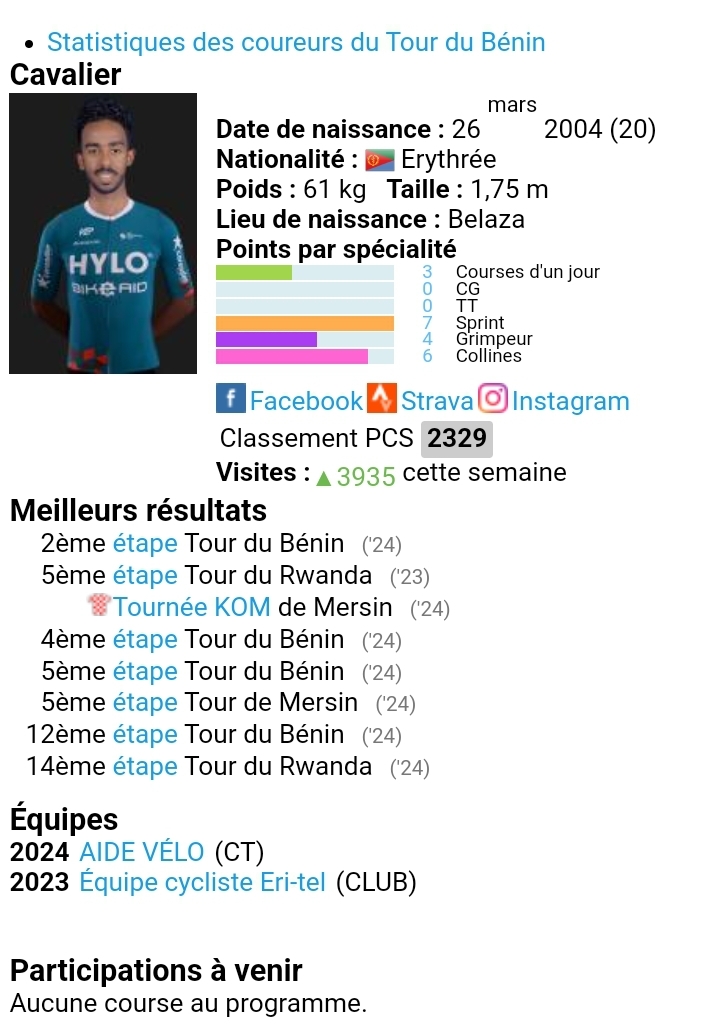 2e : Habteab Yoel (Team Bike AID/ Allemagne 🇩🇪)