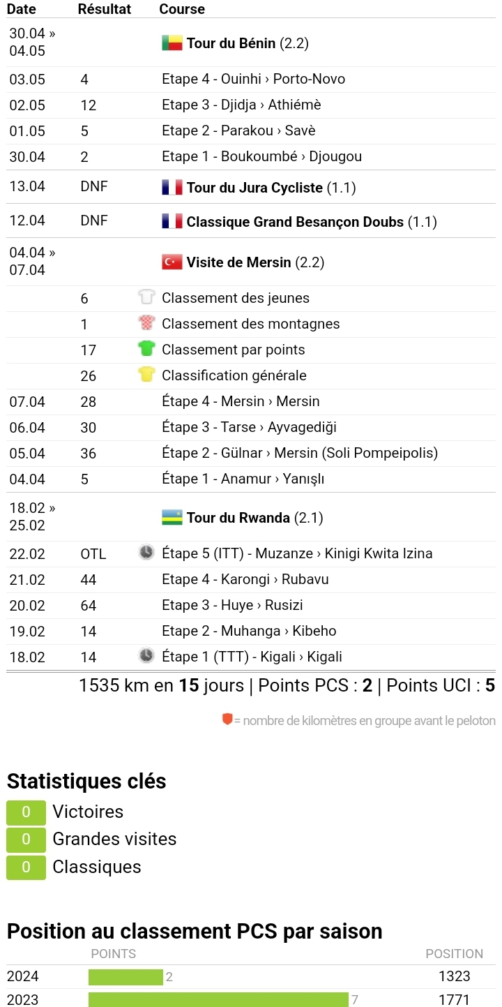Le coach Adrien Niyonshuti a travaillé beaucoup avec nous, ce qui nous a permis d’être plus en forme contrairement aux autres tours. On promet de tenter quelque chose sur l’étape de Porto-Novo demain.“, a-t-il promis avant sa reconnaissance envers le public.