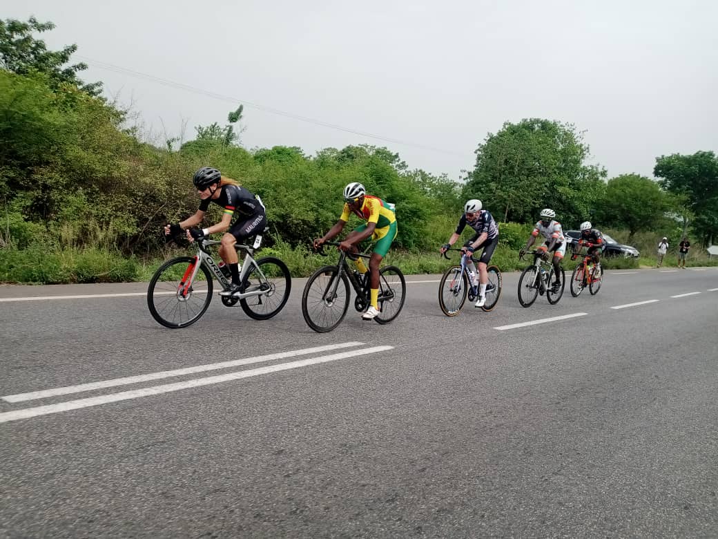 Les 5 échappés : Chofor Fabrice (Cameroun 🇨🇲), Le Clair Bryan (France 🇫🇷), Ange Kouadio (Côte d’Ivoire 🇨🇮), Samuel Quevauvilliers (Îles Maurice 🇲🇺) et Wahabou Bouda (Burkina Faso 🇧🇫), possèdent désormais 3’5″ sur le peloton