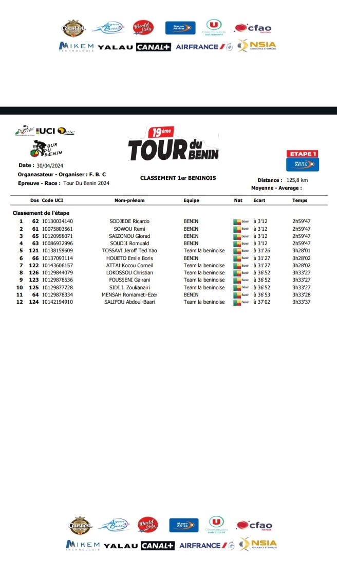 Merci de prendre rendez-vous avec la 2e étape du Tour du Bénin