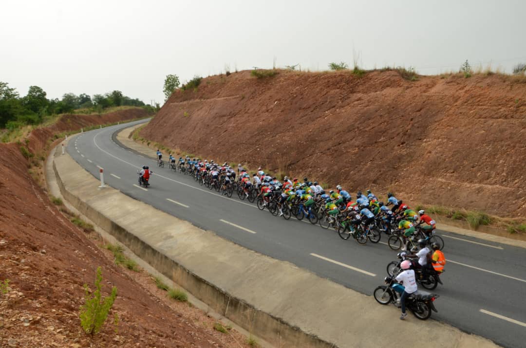 Un coureur du Cameroun Chofor Fabrice est sorti du peloton et a pris quelques seconde au Km 4,75