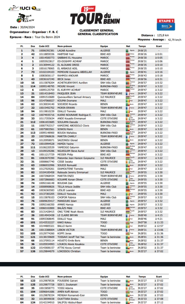 C’est finalement un algérien qui s’offre la première étape du Tour du Bénin 2024.